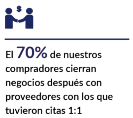 Hacemos un match estratégico entre proveedor y comprador con citas personalizadas que optimizan tiempos de búsqueda y maximizan el valor de cada conexión.